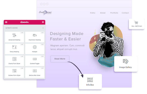 4. Portfolio websites: Elementor’s vast library of pre-built templates and customization options. This makes it an excellent choice for creating stunning portfolio websites to showcase your work.